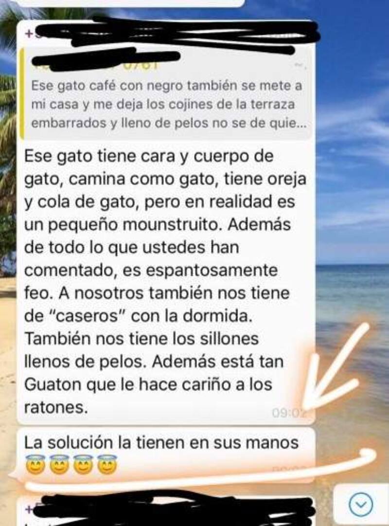 "...este personaje nos mandó un MENSAJE DE TEXTO para decirnos que lo atropelló " sin querer" y que lo dejó en la puerta de nuestra casa para que sus hijos no lo vieran. ¿ qué clase de persona hace eso! Más bien que clase de monstruo !? Lo quita por sus hijos ok! y los nuestros ?!! para mi hijos Milo era su hermano (...) no puedo expresar lo que siento. Pero Dios desde arriba juzga y espero no verle nunca la cara a este HDP pq no tengo otra palabra para llamarlo...", explotó en su Instagram, donde mostró "pantallazos" del Whatsapp vecinal.