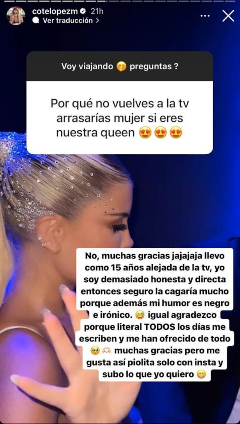 Por Rubith Morales¿Coté López regresará a la televisión? La influencer respondió esta duda