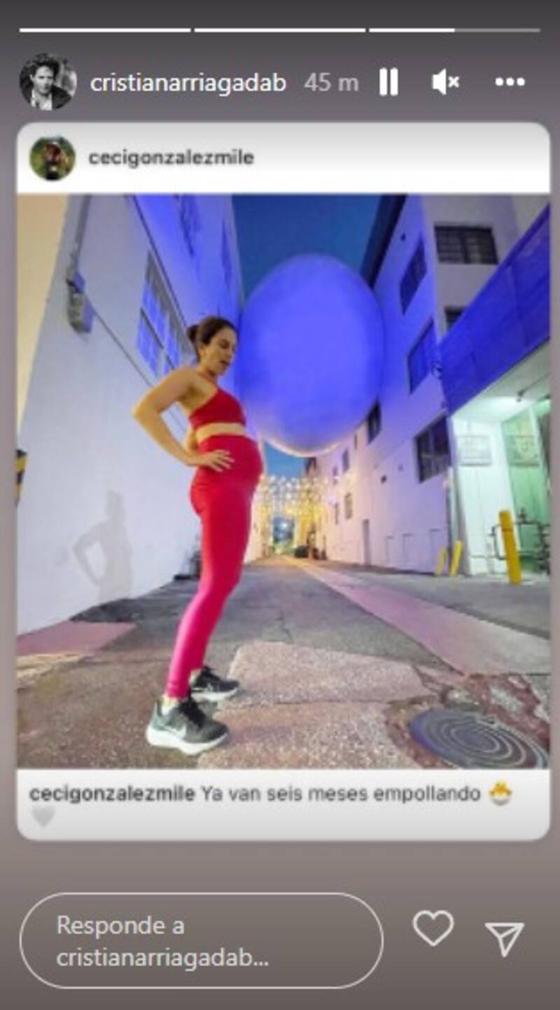 A través de sus historias de Instagram el actor reposteó una foto de González donde aparece posando y celebrando su avanzada gestación.