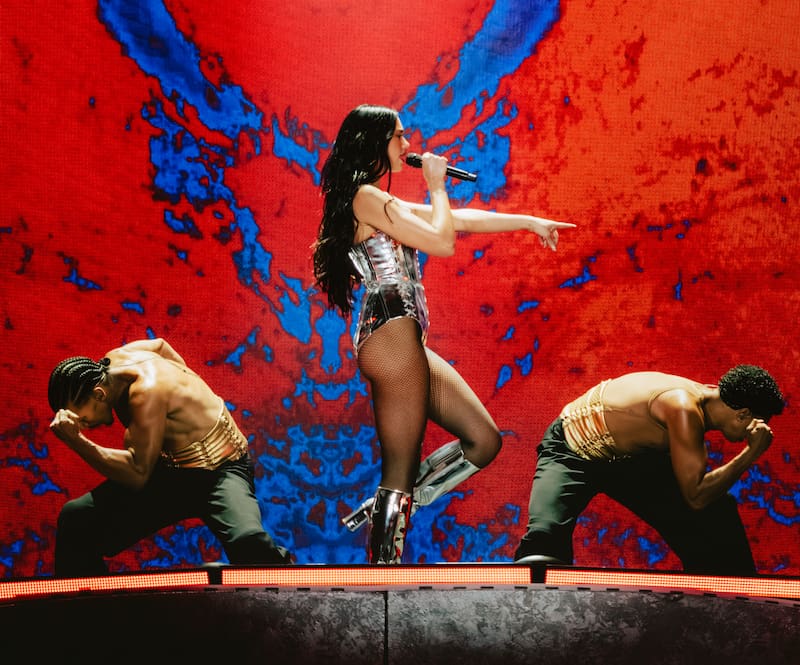 A lo largo de todo aquello, el show sin duda tuvo puntos altos en los hits. Por ejemplo, durante la pegajosa “Levitating”, las chispas iluminaron el aire con fuegos artificiales y la cantante elevó a la multitud de forma simbólica.