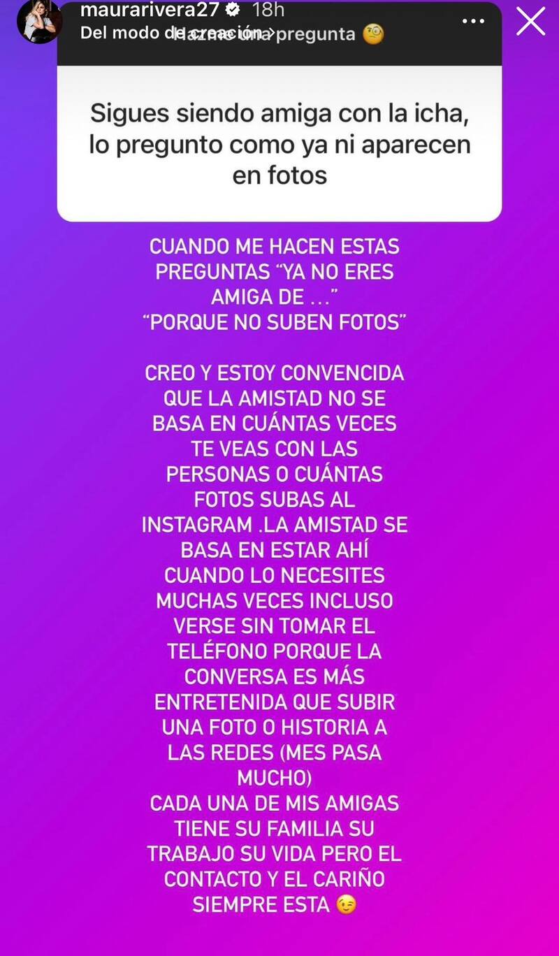 “¿Sigues siendo amiga con la Icha? Lo pregunto como ya ni aparecen en fotos”, fue la inquietud que le dejaron en la plataforma virtual.