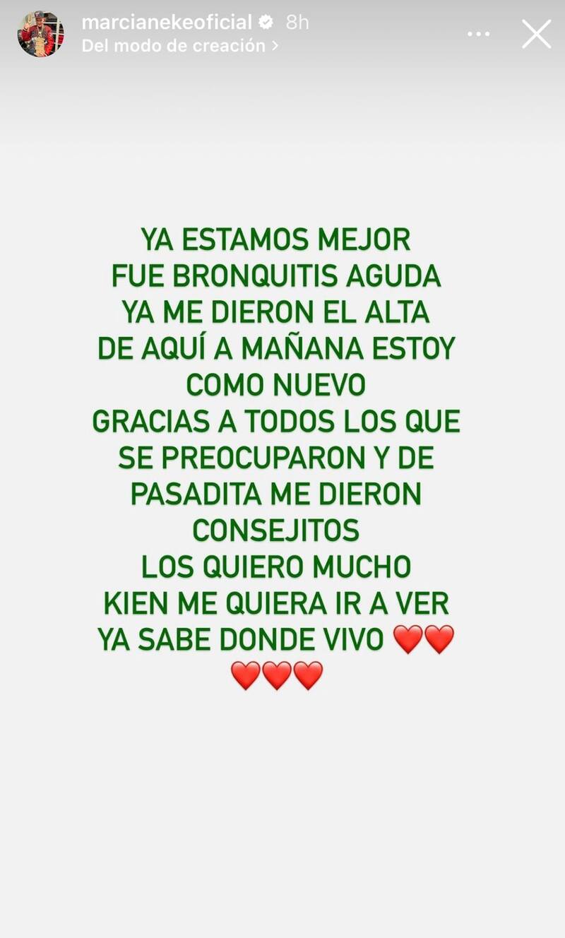 Preocupación generó en las últimas horas Marcianeke, quien compartió una fotografía en sus redes sociales desde un centro asistencial.