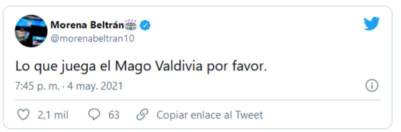 "Lo que juega el Mago Valdivia por favor", escribió Beltrán en su red social.