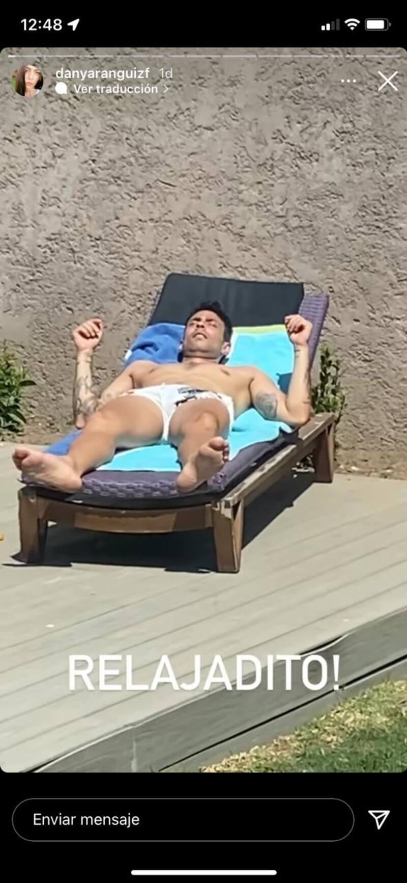 "Relajadito", escribió la modelo, acompañado con un video de Valdivia quien se encontraba a la orilla de una piscina, demostrando que siguen juntos, y despejando cualquier especulación.