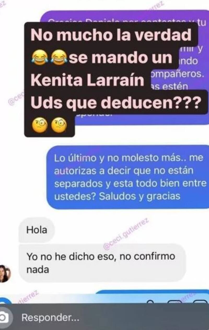 Cuando Gutiérrez, como se puede ver en un pantallazo, le pide autorización para aclarar que su relación está bien y no están separados, sin embargo, Colett fue contundente: