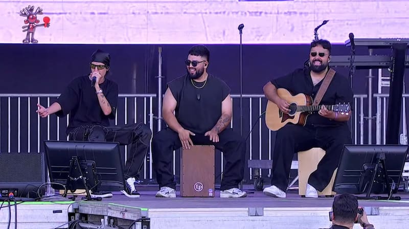 A lo largo del show alternaron guitarra, cajón peruano, saxofón y otros instrumentos, generando una sonoridad más orgánica que le dio al concierto una vibra íntima y playera.