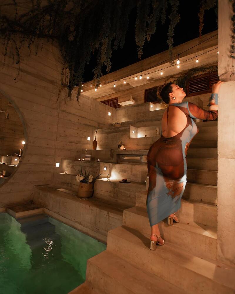 Michelle Carvalho compartió recientemente una serie de imágenes en su cuenta de Instagram donde se le ve posando con un sensual vestido semitransparente que acentúa su figura curvilínea.