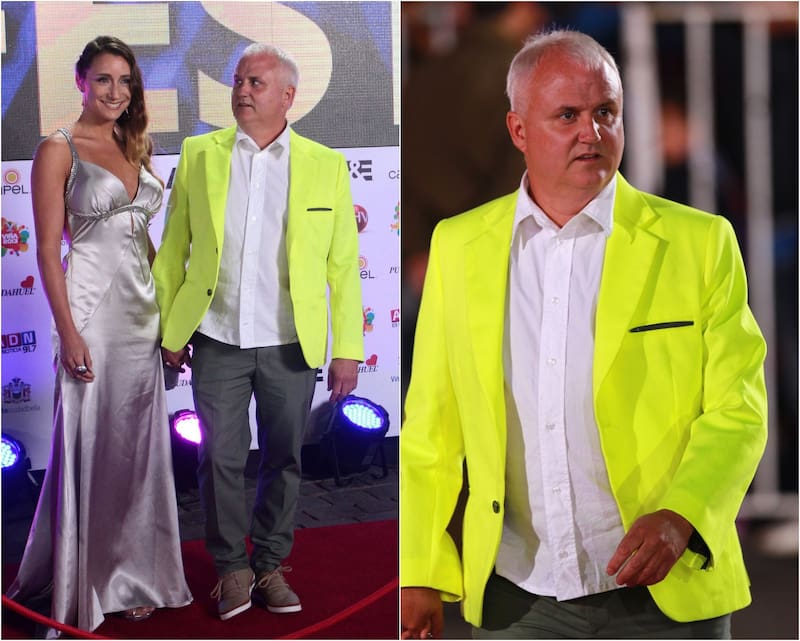 En Rumpy en 2013 se pasó pa’ descuidado. Y es que pareciera que no le importaba nada y se puso lo primero y más llamativo que encontró en su closet, una chaqueta amarillo fosforescente y unos jeans descuidados, look que opacó a su pareja, quien lucía un vestido bastante lindo y acorde a la gala.