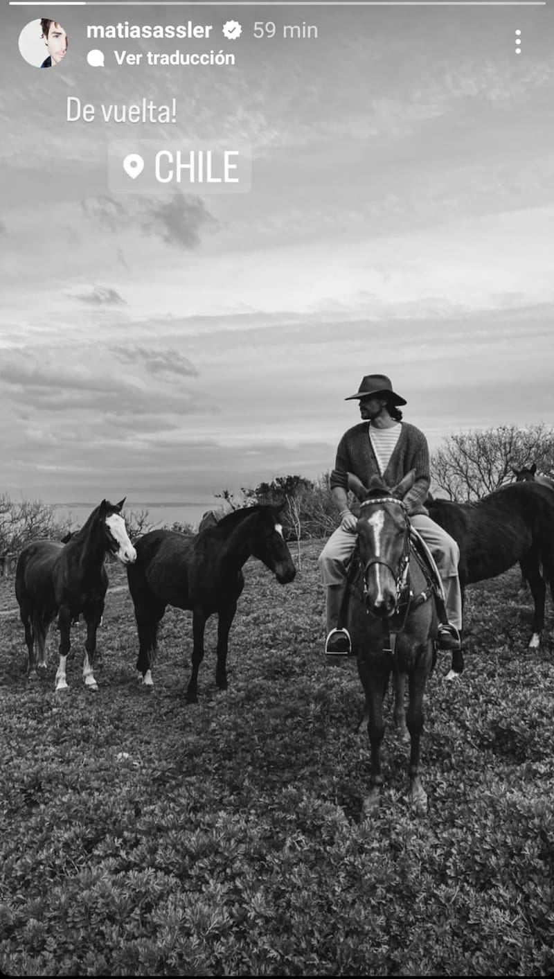En la postal se ve a Matías Assler disfrutando de una tarde al aire libre, montando un caballo. “De vuelta”, confirmó.