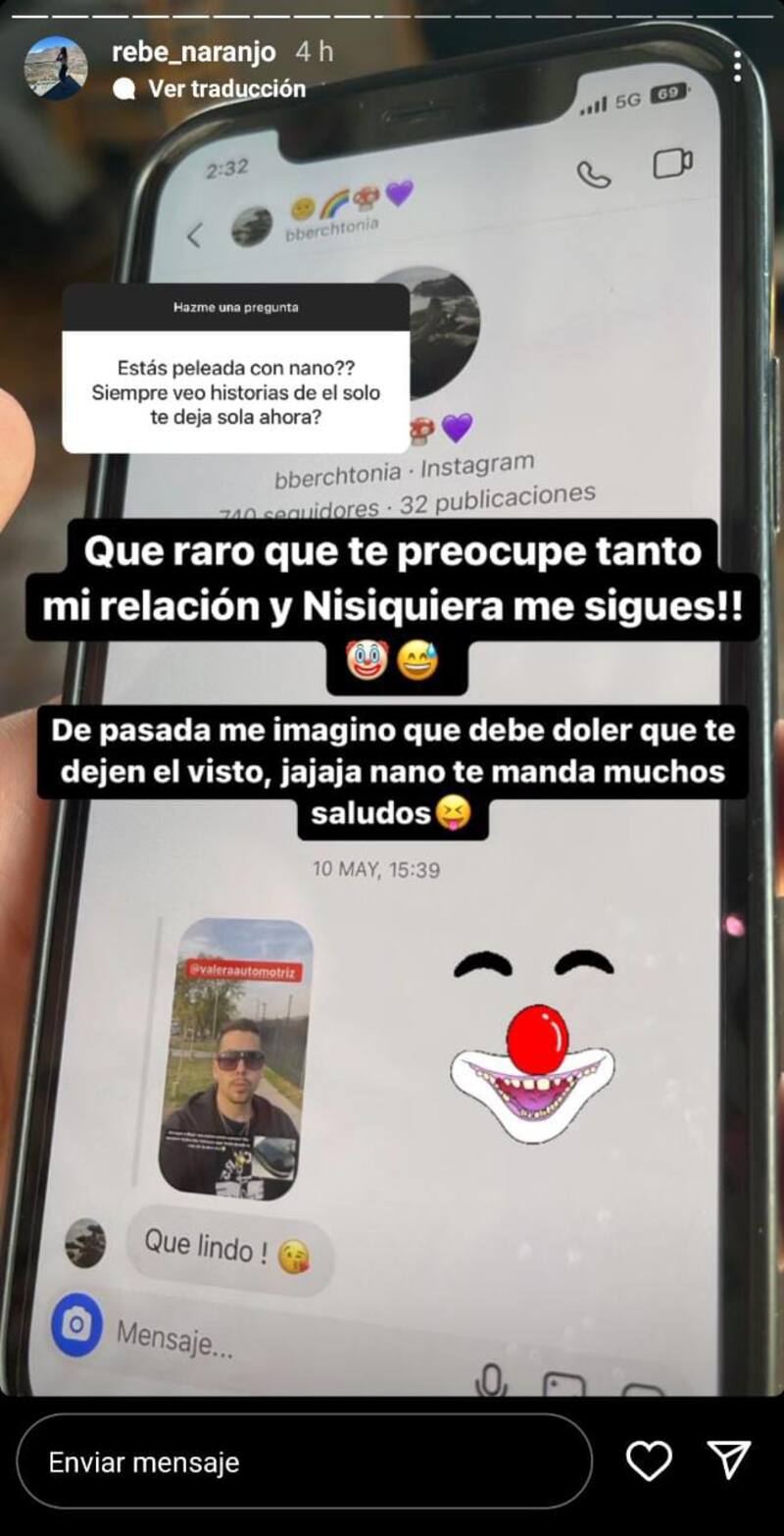 “¿Estás peleada con Nano?, siempre veo historias de él solo...¿te deja sola ahora?”, comentó el usuario.