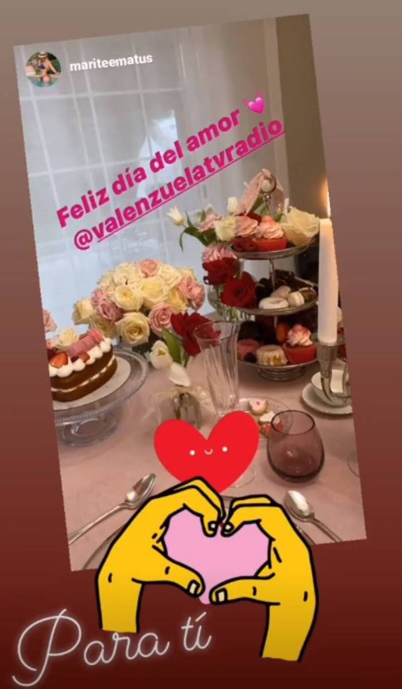 Con una serie de videos y fotos, Matus etiquetó al conductor radial, quien estaría detrás de la sorpresa. "Sólo puedo decir por fin" y "Feliz día del amor, @valenzuelatvradio", escribió.