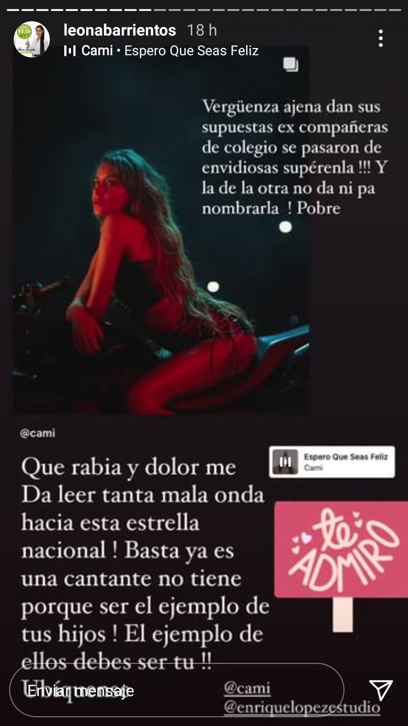 "Vergüenza ajena dan sus supuestas excompañeras de colegio, se pasaron de envidiosas, supérenla", declaró en una historia de Instagram. "Y lo de la otra no da ni para nombrarla! Pobre".