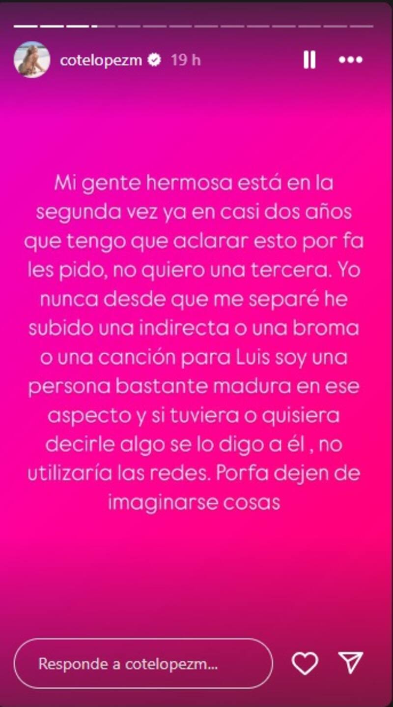 “Yo nunca desde que me separé he subido una indirecta o una broma o una canción para Luis”, afirmó Coté.