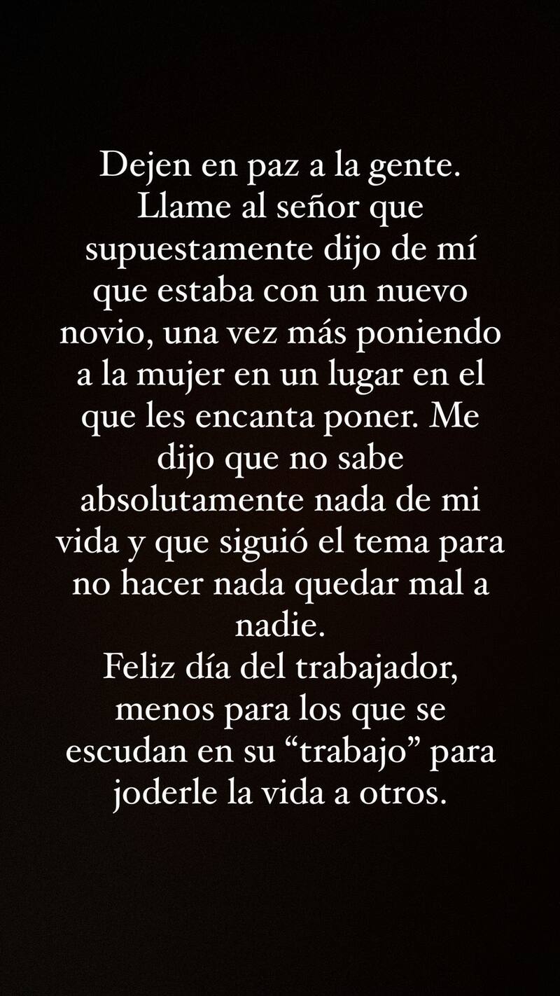 “Dejen en paz a la gente. Llamen al señor que supuestamente dijo de mí que estaba con nuevo novio, una vez más poniendo a la mujer en un lugar que les encanta poner”, sentenció.
