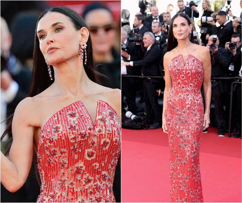 Demi Moore recorrió la alfombra roja del Festival de Cannes por primera vez en 1995, no presentaba ningún película, acompañaba en ese entonces a quien era su marido Bruce Willis, que estrenaba El quinto elemento.