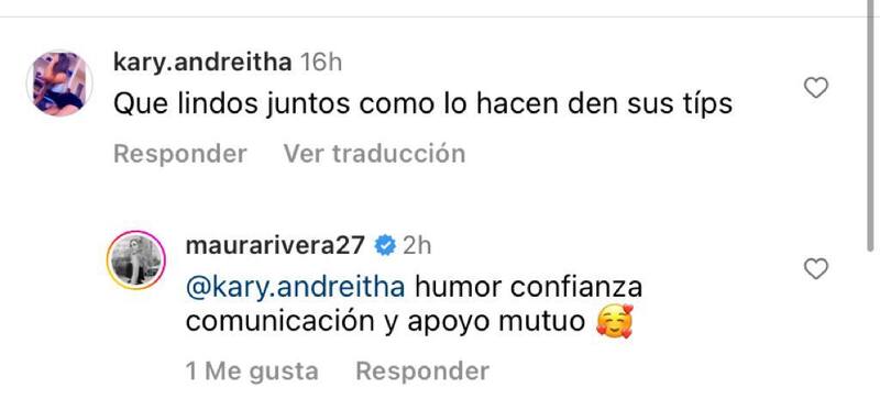Ante tanto amor y compañerismo, una usuaria de Instagram comentó la reciente fotografía de Rivera en la red social, donde se mostró más enamorada que nunca.