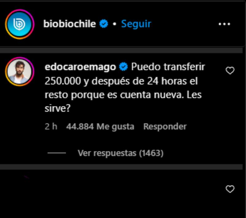 Este sábado, tras enterarse de las 350 denuncias ante el CNTV, el comediante respondió irónicamente en una publicación en Instagram de BioBioChile.