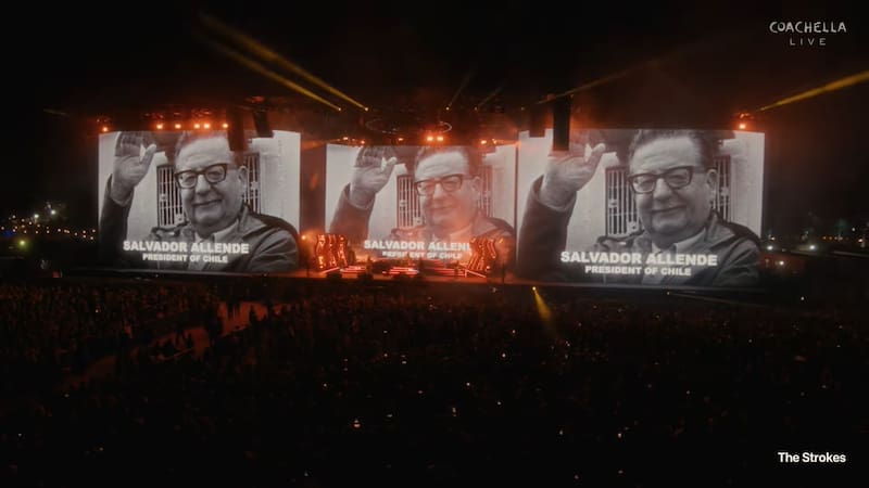 La noche de este sábado, la banda The Strokes sorprendió al cerrar su show en el festival Coachella con un potente mensaje político que incluyó una referencia a Salvador Allende.