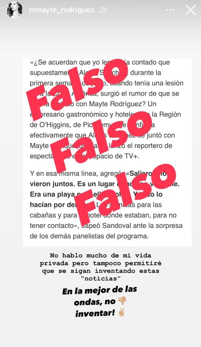 Sin embargo, todo el cahuín fue desmentido este miércoles por la propia Mayte, quien a través de su cuenta de Instagram, aclaró la situación.