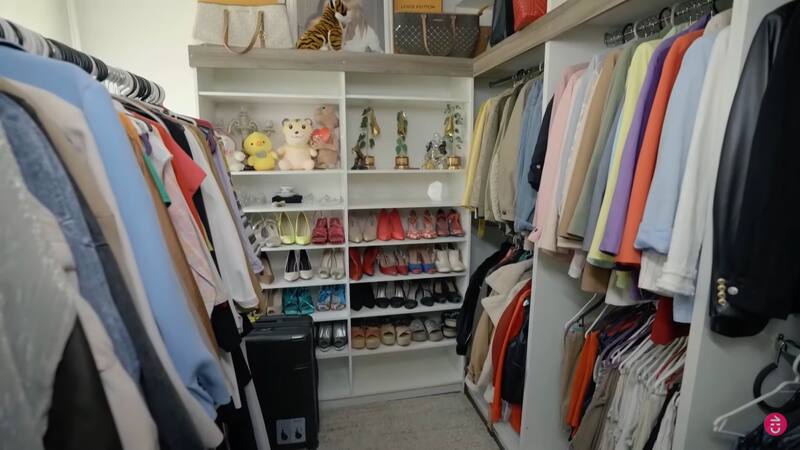 La exmodelo enseñó su amplio walking clóset, donde tenía su ropa, sus zapatos, algunos peluches y otros importantes recuerdos, como sus Copihues de Oro y la corona que recibió cuando fue elegida reina de La Pampilla en 2007.