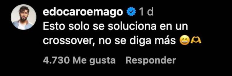 “Esto solo se soluciona en un crossover, no se diga más”, dijo el comediante, quien desató las risas de los usuarios de Instagram con su reacción.