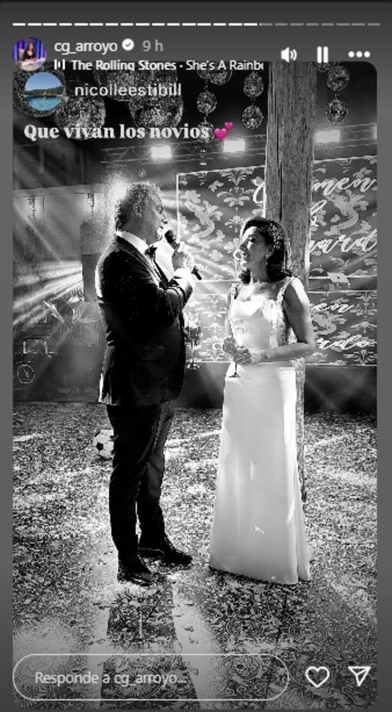 Tal como se puede ver en las imágenes, Arroyo lució un elegante vestido blanco con unos detalles brillantes a los costados, mientras que Borgeat se vistió con un sencillo pero elegante traje negro.