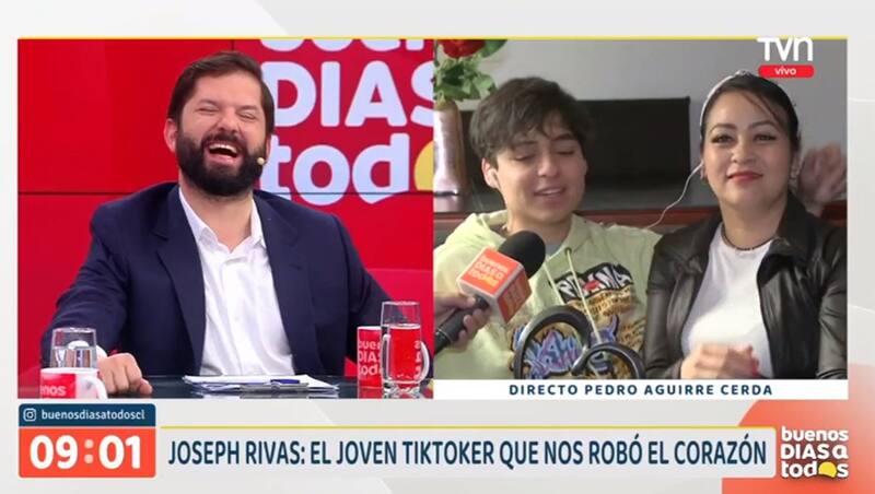 Fue entonces, que apareció en las pantallas del matinal Boric, sorprendiendo profundamente al joven. “¡No! ¡Está el presidente! ‘¡Dios mío, este hombre! No puede ser. Nos está viendo”, exclamó emocionado Joseph cuando lo saludó el presidente.