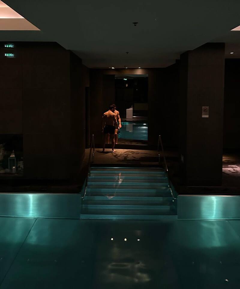 El intérprete se lució con una sensual sesión de fotos desde una piscina de un hotel de Londres. Mostrando su trabajado cuerpo gracias a la actividad física que constantemente hace y muestra en redes.