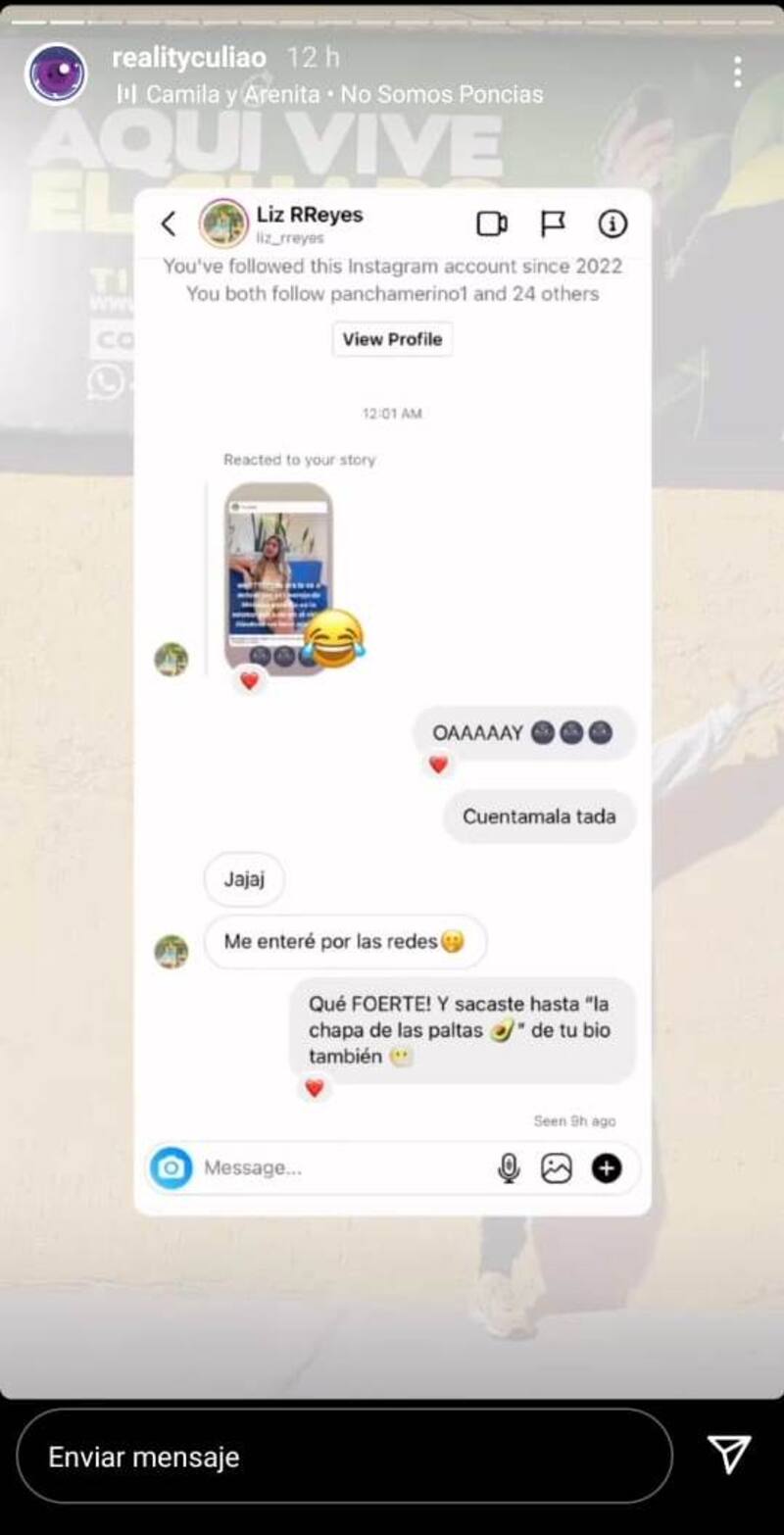 Tras la polémica, el usuario de Instagram compartió una serie de pantallazos de Liz Reyes, la pareja de Leo Méndez, quien compartió diversos mensajes en sus redes sociales y quien incluso habló con el joven que viralizó el video.
