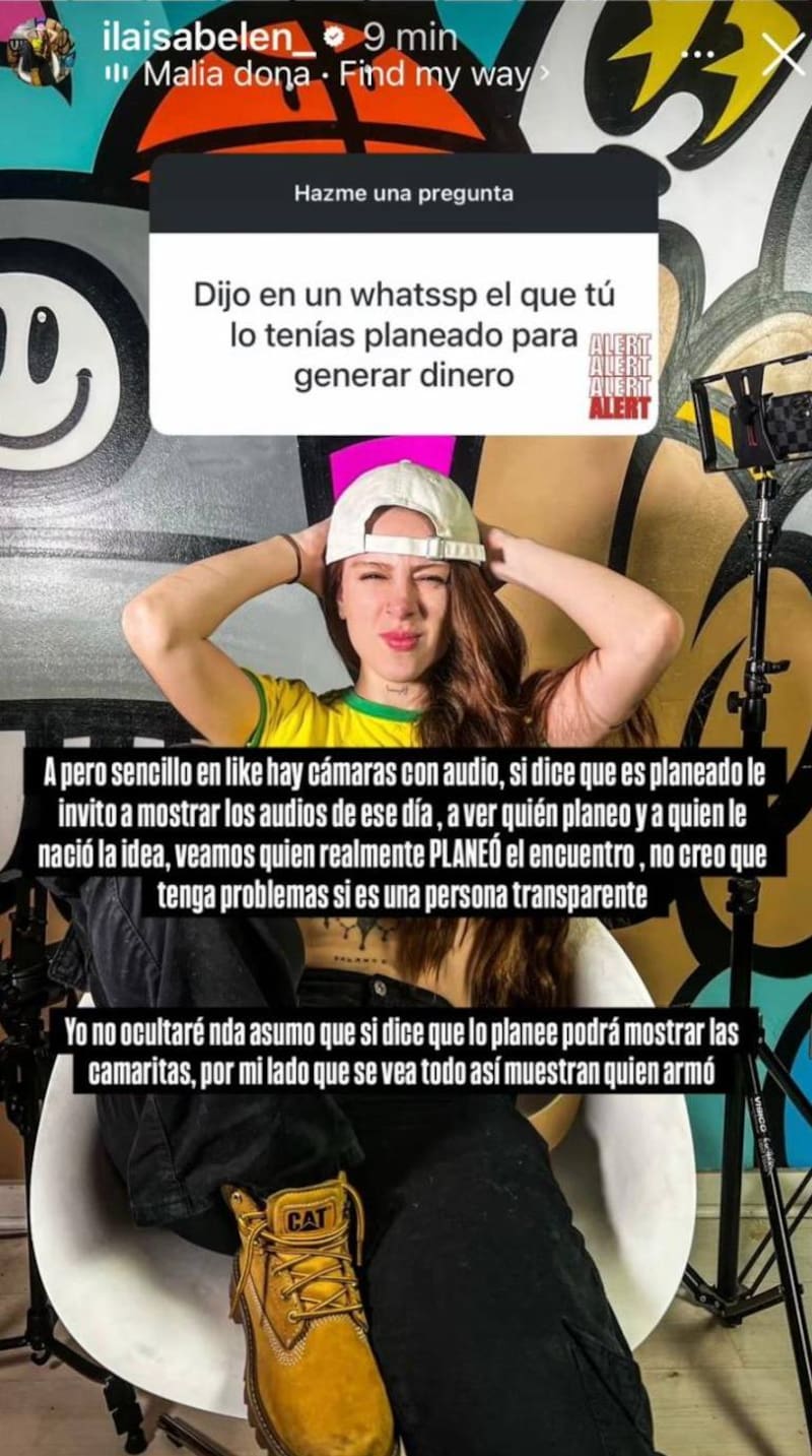 Y este lunes, a raíz de esa situación, Ilaisa contratacó tras un comentario que le llegó por Instagram, en el cual le informaban que Karol la acusó de querer sacarle provecho al asunto, y de tener todo planeado para ganar dinero fácil.