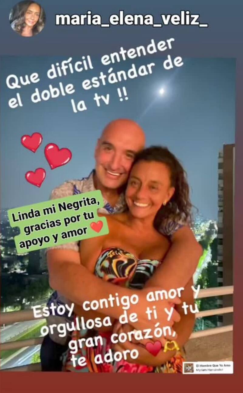 Entre sus historias también destacó lo publicado por su pareja, María Elena Véliz, quien subió una fotografía de ambos abrazados y escribiendo un buen palo dirigido al mundo de la televisión.