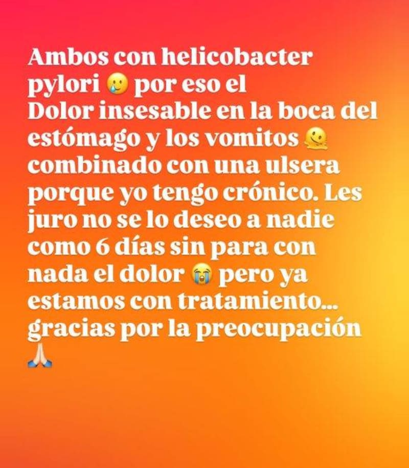 A raíz de eso, finalmente los especialista le pudieron entregar un diagnótico más claro. De hecho, le detectaron la presencia de una bacteria en su organismo que infecta el estómago.