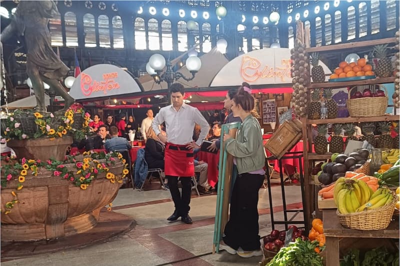 Otra de las actrices que estuvo presente ese día fue Carmen Zabala quien da vida a la bailarina Shakira, que pese a estar presente en el Mercado, también tuvo su propio rodaje en el “Demencia”, el club nocturno donde baila su personaje.