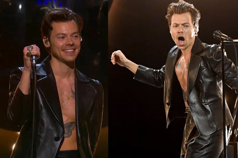 En el escenario del Staples Center, Styles interpretó uno de los éxitos del año "Watermelon Sugar" (algo así como… 'Azúcar de sandía') con la presencia de una gran banda en vivo, y un look setentero que no dejó a nadie intrascendente.