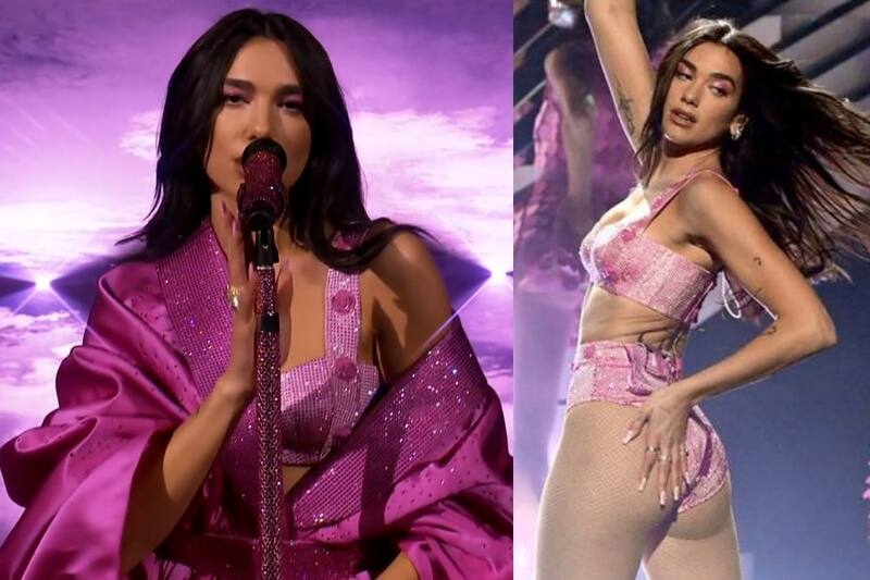 Aunque lo importante vino después: quiso impresionar con tres cambios de look rosas durante los 5 minutos que duró su presentación y que consistió en hacer una especie de "remix" de dos de sus éxitos: "Levitating" y "Don't Stop Now".