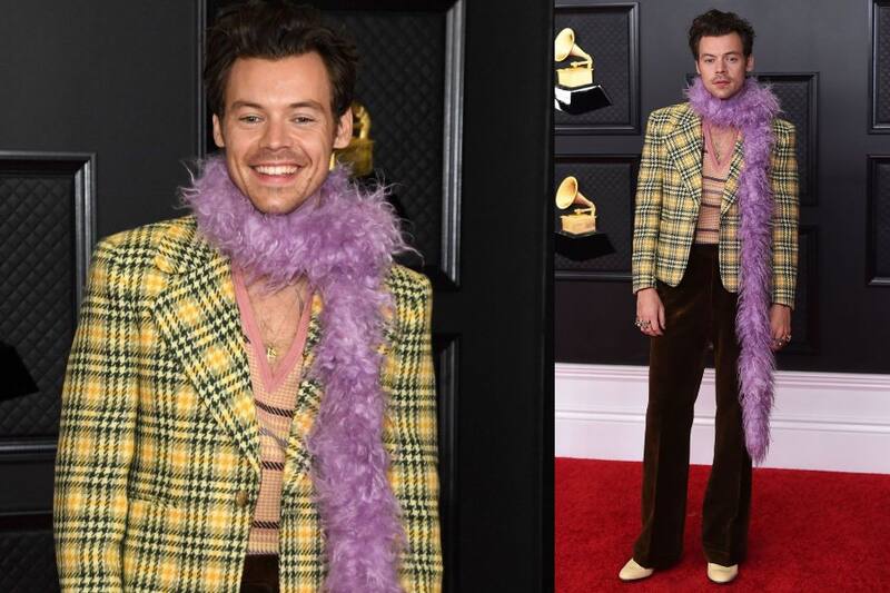 El ex One Direction fue el encargado de dar el vamos al show televisivo de los Grammys 2020. Pese a que en la presentación a la prensa se dejó ver con un colorido traje con tintes más veraniegos, para su presentación decidió algo más demostrativo.