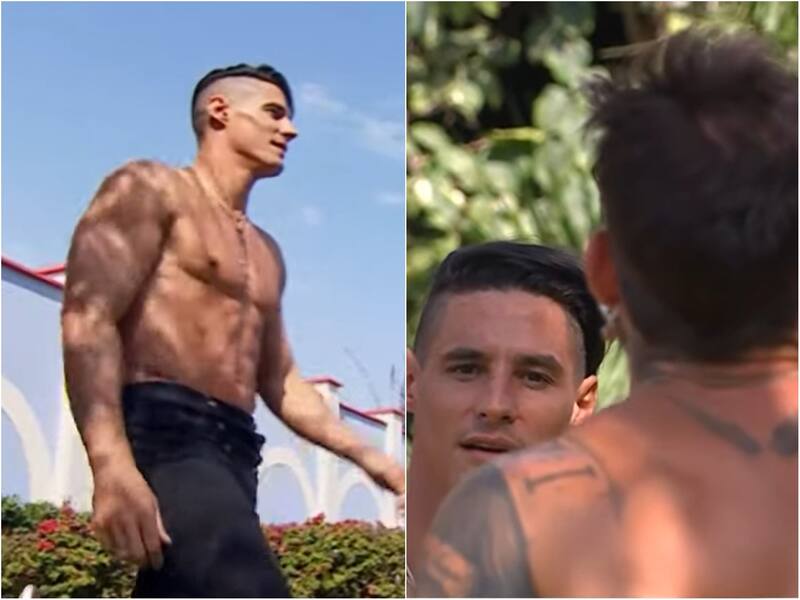 El portón de la casona se abrió para que entrara caminando el galán a torso desnudo, ante la presencia de los integrantes del reality.