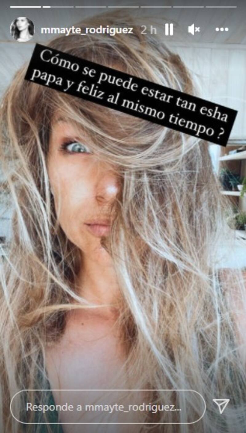 “¿Cómo se puede estar tan echa papa y feliz al mismo tiempo?”, preguntó Rodríguez, sonriendo para la cámara dejando en evidencia que disfruta su nueva aventura junto a su pequeño bebé.