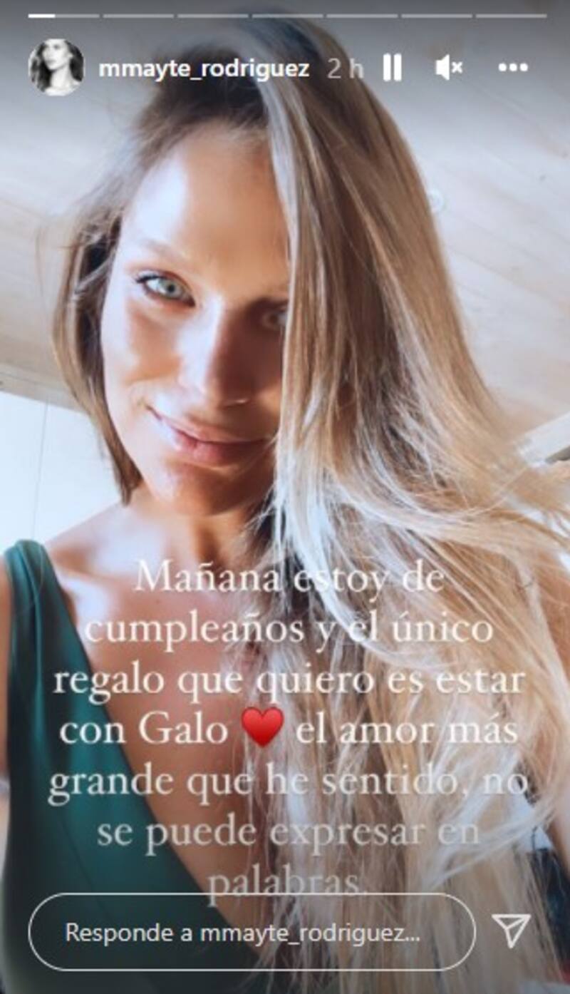 “Mañana estoy de cumpleaños y el único regalo que quiero es estar con Galo, el amor más grande que he sentido, no se puede expresar en palabras”, señaló, refiriéndose posteriormente a cómo ha enfrentado la maternidad.