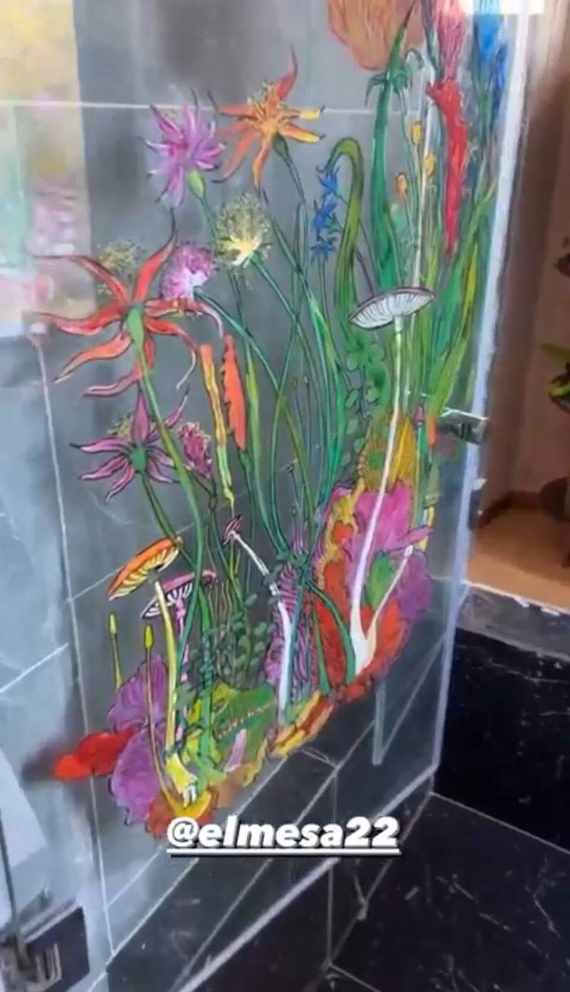 “Miren esto que me pintó mi gran amigo, Rodrigo Mesa. Está súper lindo, miren la ventana de la ducha. El artista hizo de las suyas”, escribió en su cuenta de Instagram junto al video.