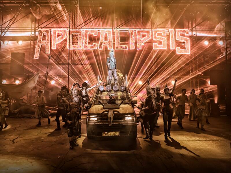 Apocalipsis es un show trepidante, brutal e intenso que fusiona por primera vez en un espectáculo el ritmo del teatro musical y el riesgo del circo. El espectáculo deja al público sin aliento y lanza un mensaje que no dejará indiferente a nadie.