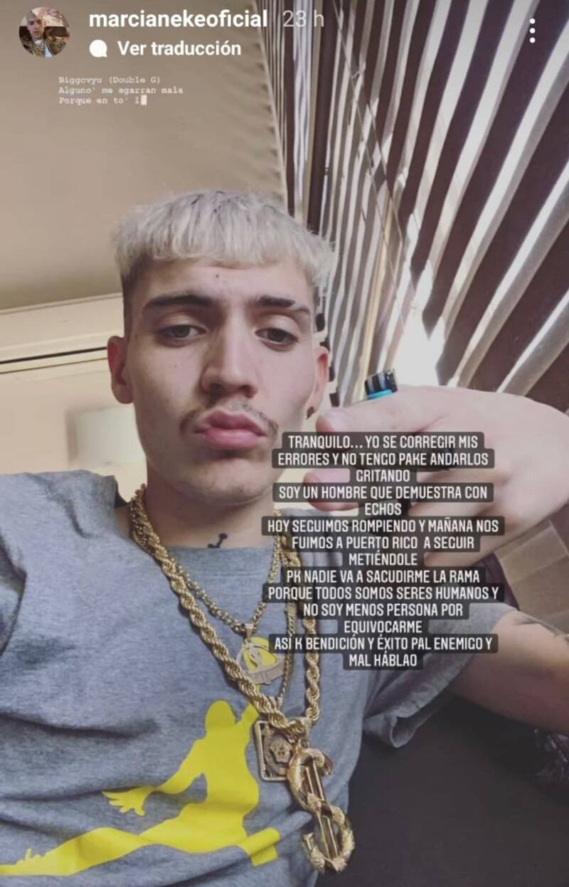 “Tranquilo, yo sé corregir mis errores y no tengo par que andarlos gritando. Hoy seguimos rompiendo y mañana nos fuimos a Puerto Rico a seguir metiéndole”, escribió Marcianeke en primera instancia.