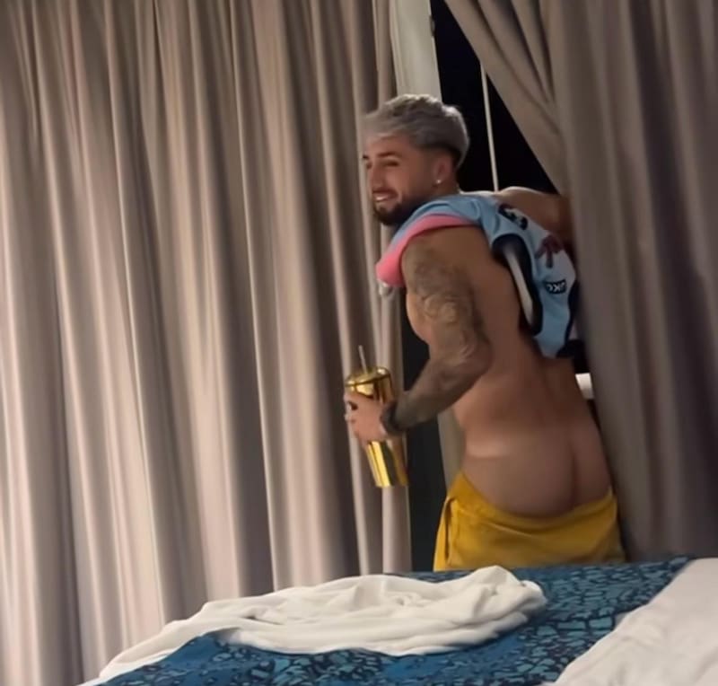 Por ejemplo, en las últimas horas Bambino lo dio todo y más en medio de una alocada celebración en la habitación del lugar donde se están quedando.
