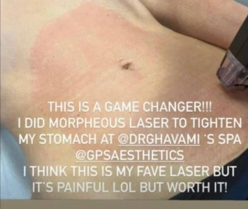 Se trata de un laser llamado Morpheus, y por lo que se alcanza a ver en la historia que subió, le deja toda la zona abdominal enrojecida.