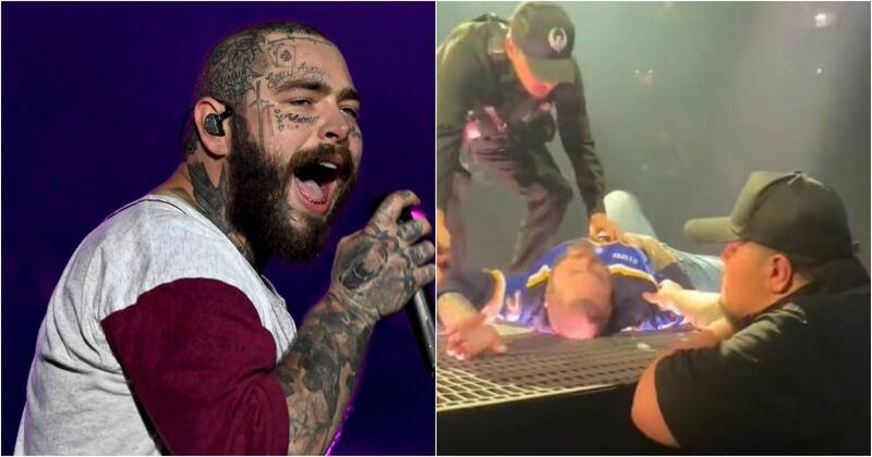 Retorciéndose de dolor, así quedó registrado en varias videos virales la brutal caída del cantante Post Malone, en Estados Unidos.