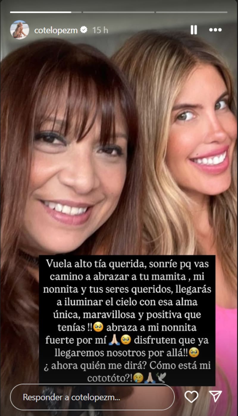 Una nueva pérdida enluta a la familia de Coté López. A la muerte de su Nonna, en agosto pasado, ahora se sumó el fallecimiento de su tía materna, Isabel Merino.