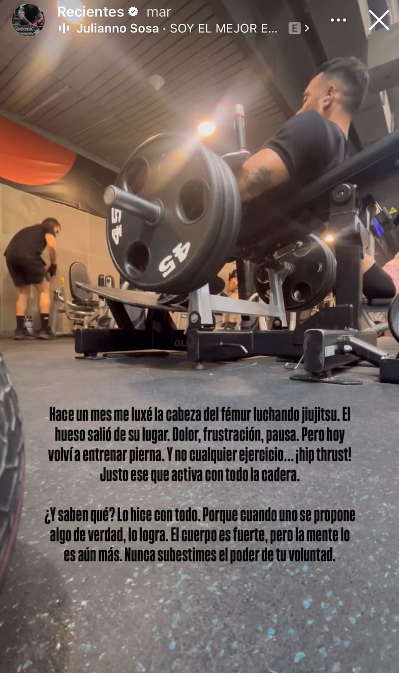 “Hace un mes me luxé la cabeza del fémur luchando jiu-jitsu. El hueso salió de su lugar”, reveló en un video donde aparece levantando pesas.