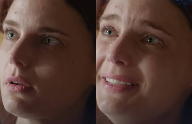 Tras aquel momento, ella, sorprendida, se rapa la cara y expresa: