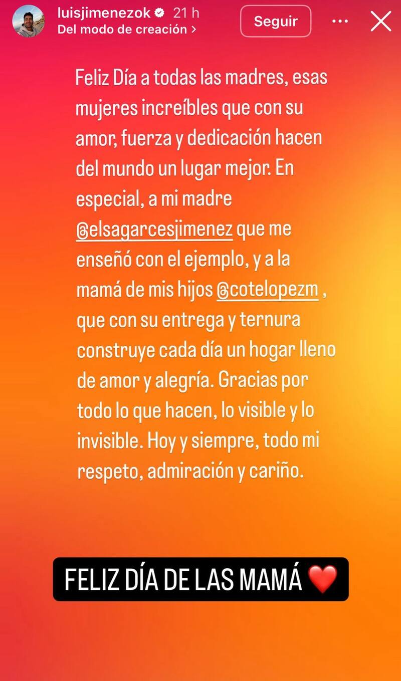 Por Juan Carlos MuñozEl inesperado mensaje de Luis Jiménez a Cote López en el Día de la Madre: le dedicó honesto saludo