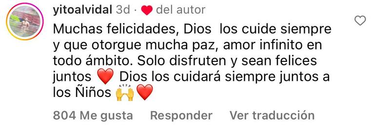 “Muchas felicidades, Dios los cuide siempre y que otorgue mucha paz, amor infinito en todo ámbito”, escribió de entrada ‘Yito Alvidal’.